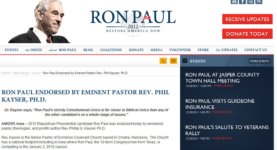 Ron Paul's Website Boasts Of Endorsement From "Death To Gays" Christian Pastor
