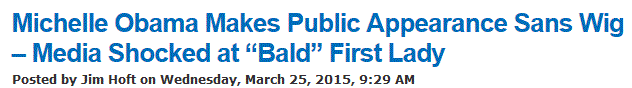 An episode of Jeopardy has aired in which the First Lady participated in a video category about health eating. While she clearly had her hair pulled tightly and clasped at the back, wingnut sites are today calling her "bald." Because Benghazi, probably.