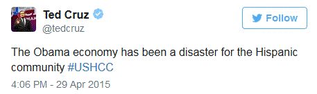 "I don’t think I’ve ever seen an Hispanic panhandler. And the reason is: In our community it would be shameful to be begging on the street. I think the Hispanic community is a fundamentally conservative community. If you look at the values that resonate in our community, they’re faith, family, patriotism, hard work,” Cruz said. “Now if you want people to work their fingers to their bone, hard work, you’ll have Hispanic men and women lining up to work hard to provide for their families. Those are all conservative values." - Sen. Ted Cruz, speaking yesterday with the Hispanic Chamber of Commerce.
