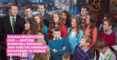 The Josh Duggar molestation case did not end when Springdale, Ark. police closed their investigation in 2006 because the statute of limitations had run out, In Touch Weekly is reporting exclusively. Police referred the matter to the Families in Need of Services agency, which has jurisdiction over minors. The Department of Human Services (DHS) was then brought into the case, In Touch has learned. Nine months after those agencies entered the Duggar molestation case, Josh Duggar sued the Arkansas Department of Human Services. A trial was held on August 6, 2007. The results of the investigation into the Duggars and Josh’s trial are sealed. But a source familiar with the Duggar investigation told In Touch it was likely that Josh “appealed the DHS decision or finding from their investigation.” The source notes that DHS had the authority to apply “restrictions or stipulations about him being at home with the victims."So it appears that Josh Duggar sued so that he could stay in the family home with his victims. In 2007 he was 19 years old. The Duggars are refusing to comment about the trial. (Tipped by JMG reader Lynda)