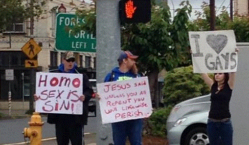 "I was so irritated because I see them all around town and all they ever do is make people feel like crap about themselves,” said Ragan, a junior at Tillamook High School. The men were standing outside Eyes of Oregon, on 1st Street and Main Avenue, where her mother works. “I went inside and asked her and her boss if it would be all right if I made a poster that stands up for what I believe in,” she said. “They were totally all for it. So I made a sign that said, ‘I love Gays.’” The two men, said Makaila, began insulting her personally. “They were calling me names, and asking my mom questions, like, ‘How many times did you have to get an abortion before you were able to have your daughter?’ and saying, ‘You’re going to burn in hell right along with your daughter.’ The things they were saying were just awful, but I didn’t let them faze me.”Makaila's one-person counter-protest was soon joined by many others and eventually more than 40 supporters had shown up to stand next to her with signs of their own. After more than six hours, the haters finally went home. Over on Facebook, Makaila has vowed to return. Her mom says, "Makaila stood up. Boy, did she ever! Look what she did – wow! I’m so, so proud of her."