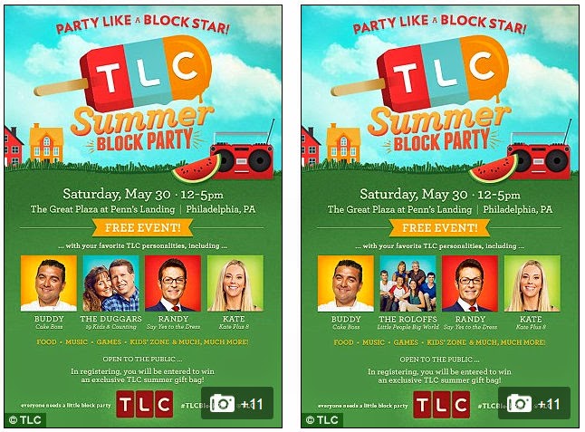 TLC has pulled Jim Bob Duggar, his wife Michelle and their 19 children from its highly-anticipated Summer Block Party, which is taking place in Philadelphia at noon on Saturday. The family had originally been slated to appear at the event, which features a number of network stars and is open and free to the public - and had even appeared on the party's official poster. But they have since been dropped from the party, while Little People Big World's Roloff family has replaced Jim Bob and Michelle on the poster, according to screenshots from the event's website. It comes just days after a shocking 2006 police report emerged alleging that Josh had molested five young girls in 2002 and 2003 - in some cases, while they were sleeping - and later admitted to it. On Friday, TLC revealed it had pulled 19 Kids and Counting from its schedule - one day after it had decided to run a marathon of the show that heavily featured Josh, which had outraged fans.TLC has not yet formally canceled the Duggars' show. (Tipped by JMG reader Mike)