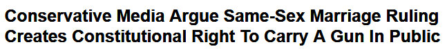 On June 26, the Supreme Court issued a decision in Obergefell v. Hodges, holding that the Fourteenth Amendment requires that states issue marriage licenses to same sex couples. Conservative media and the National Rifle Association (NRA) quickly seized on the decision to draw a parallel with concealed carry reciprocity, a top federal legislative priority of the NRA. Reciprocity legislation, also known as federally mandated concealed carry, would force states to recognize permits to carry concealed guns issued by other states, regardless of what the issuing state's standards are for issuing permits. Reciprocity legislation has been introduced in both chambers of the U.S. Congress, but conservative media and the NRA view Obergefell as an opportunity to argue that the Constitution extends at least some right to reciprocal permit recognition regardless of whether Congress acts. The problem with that argument, however, is that the 2008 landmark Supreme Court case District of Columbia v. Heller limited the scope of the Second Amendment right to gun possession to people's homes.