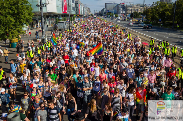 Thousands of activists have marched in scorching weather in Warsaw's 15th yearly "Equality Parade," confirming a growing public support for gay rights.The participants chanted in support of same sex marriage and the right for same-sex couples to adopt children. Carrying a huge rainbow-colored flag, they marched from the Parliament building, through the downtown Savior Square, where a giant rainbow stands. The artwork has been repeatedly burnt by right-wing groups and is to be moved next year to another location. Small groups of gay rights opponents chanted hostile rhymes, but there was no violence.More from Gay Star News: