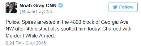Jasper Spires, the man suspected of stabbing and killing a 24-year-old at a Metro station Saturday afternoon, has reportedly been arrested. The victim, Kevin Joseph Sutherland of Northeast D.C., died after he was stabbed on a train approaching the NOMA-Gallaudet Metro Station Saturday at about 12:50 p.m. An arrest warrant was subsequently issued for Spires for first-degree murder in the case. Sutherland had recently started working for "New Blue Interactive," a political strategy firm. Co-worker Brandt McCool told ABC7, "We all really loved working with Kevin. He came on a few months ago and ever since he has been one of the best digital strategists in the country. He's a bright spot, a pleasure to work with. It's a terrible, terrible tragedy." Sutherland graduated from American University in 2013. He was twice elected Student Government Secretary.More about Sutherland from the Washington Post: