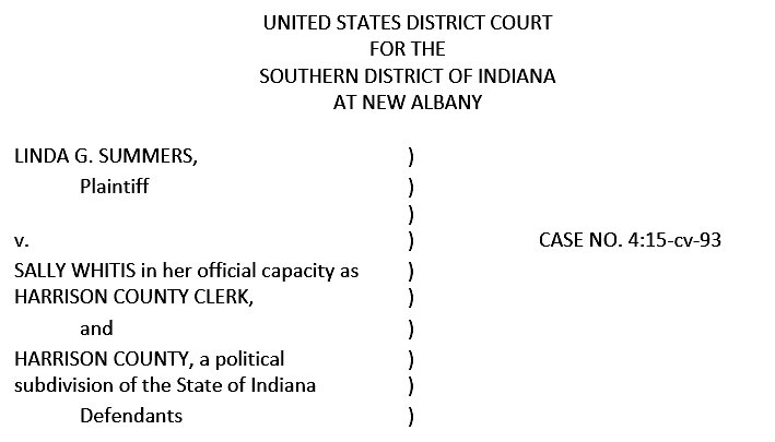 Former Harrison County, Indiana employee Linda Summers has filed a federal employment discrimination lawsuit against her former boss and the county, alleging religious discrimination after being terminated last year for refusing to issue same-sex marriage licenses. Summers logically cites Leviticus as proof of her having been wronged: