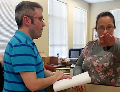 The video of Kentucky's Rowan County Clerk Kimberly Davis turning away a gay couple continues to go wildly viral and has racked up over 1.2 million views at this writing. Meanwhile a tipster points us to a 2013 story about a man who reportedly had his dog stolen at a Rowan County gas station. The young woman alleged to have stolen the dog was caught on surveillance video as she drove away. Take it away Page One Kentucky: