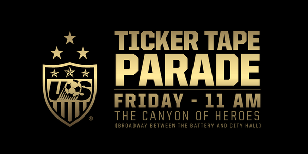 The U.S. Women's National Soccer Team will be honored with a ticker-tape parade on Friday to celebrate their recent World Cup championship. On the heels of a growing petition and entreaties from the Manhattan Borough President and others, Mayor de Blasio's office announced today that the parade will kick off at 11 a.m. on July 10th. The parade will start near the World Trade Center and continue down Broadway and the famous "Canyon Of Heroes" between the Battery and City Hall. According to the Mayor's office, "all are invited to celebrate along the parade route highlighted on the map below, and there are limited places available for those who would like the chance to attend the ceremony at City Hall upon the conclusion of the parade."This will be the first-ever ticker-tape parade for a women's team. The last solo female so honored was 55 years ago after figure skater Carol Heiss took the gold medal at the 1960 Rome Olympics. New York City's first ticker-tape parade, a spontaneous event, took place in 1886 for the dedication of the Statue Of Liberty. Stock ticker machines became obsolete in the 60s and while the "ticker-tape parade" name survives, shredded office paper and commercial confetti is now thrown from office windows and rooftops. Friday's will be the 206th such parade in New York City history. Wikipedia maintains a list all previous parades.